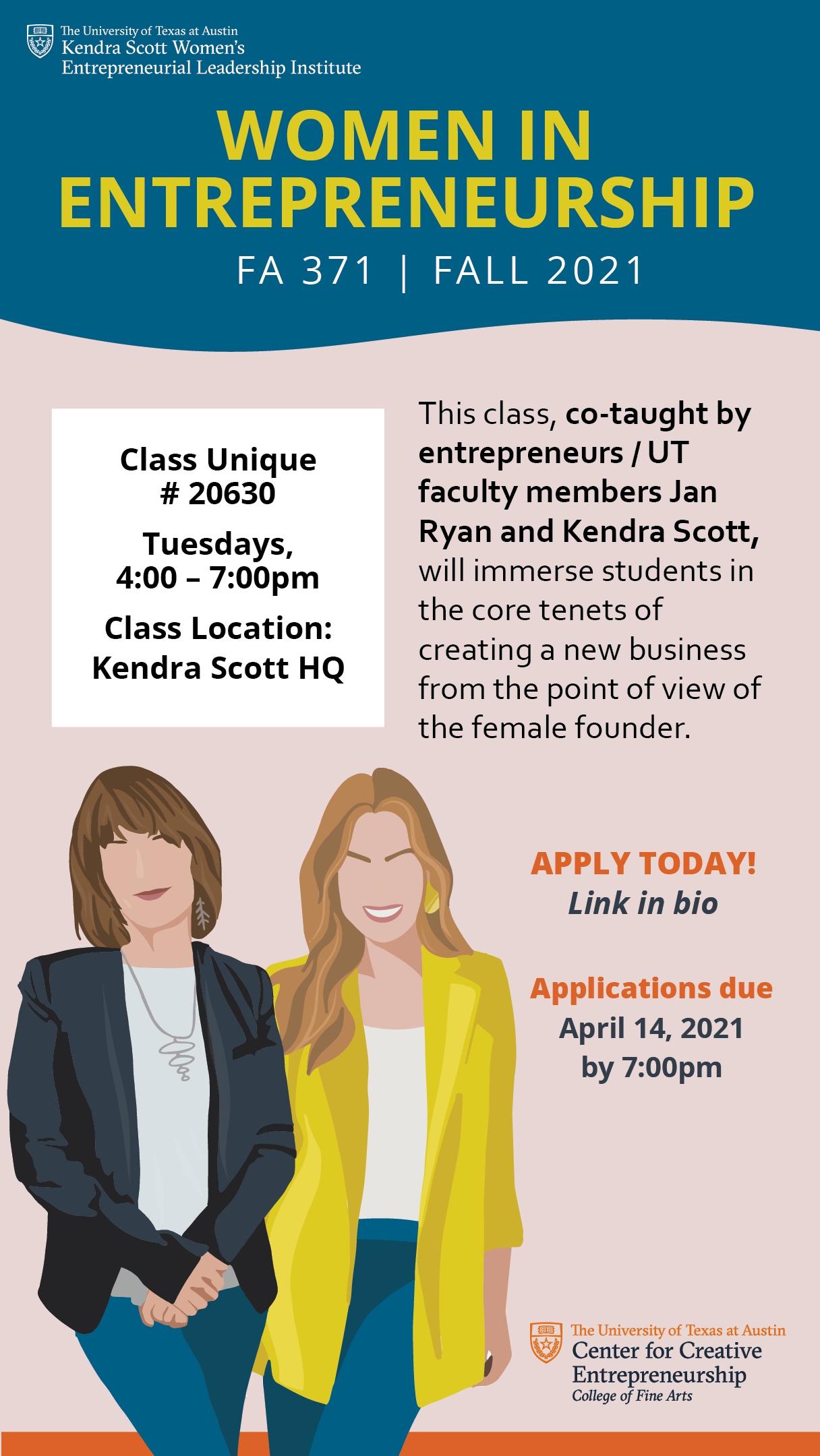Created "Women in ENtrepreneurship" class in 2018 at University of Texas